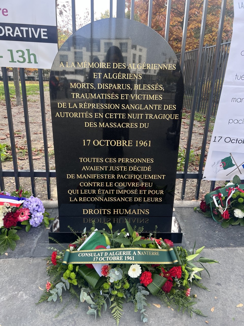 Nous sommes réunis aujourd’hui pour inaugurer une stèle commémorative, ici à Colombes, fruit d’un long combat, afin d’honorer la mémoire des algériens tués le 17 octobre 1961 en France, au cours d’un massacre, d’un crime d’Etat.